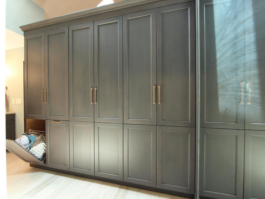 Smart storage solutions provide a necessary place to keep handheld equipment and fitness accessories. Vertically grained cabinetry with slab doors offer a minimalist aesthetic while maximizing space and freeing the room of clutter, allowing the mind to focus on movement. Custom cabinetry allows you to tailor your design to meet the unique needs of your practice. In addition to shelving, consider features like a refrigerated drawer for chilled water or a pull-out hamper to discard towels.